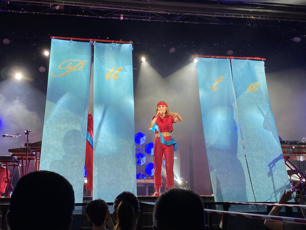 Y es que en realidad no le hace falta, pues ella sola acapara el escenario y la atención. De ella emana toda la energía. También usaba un pequeño sintetizador con sonidos pregrabados y ligeras distorsiones de voz. Un show ciertamente minimalista pero potente a más no poder. Los tres músicos llenan la sala con un sonido alejado al que puede ofrecer una banda tradicional, alejado al sonido más clásico de los primeros discos de la artista. Con grandes influencias del tecno y la música electrónica, las canciones más antiguas fueron ‘versionadas‘ con este nuevo sonido, con este filtro más vanguardista. Las que pertenecen al disco ‘Puta‘, que nacieron para abrir esta nueva etapa estilística, predominaron durante las dos horas. Aunque rescató antiguos éxitos como ‘Crash’, ‘El Fango’, ‘Hoy la bestia cena en casa’ o ‘Guerra y paz’.